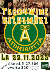 Täällä taas ATOMIROTTA! 22.11.2025 lauantaina Taco lavalle nousee jälleen mahtava ATOMIROTTA! Lähes päivälleen vuosi sitten tämä keikka oli loppuunmyyty, joten nappaa lippusi ja tule kokemaan