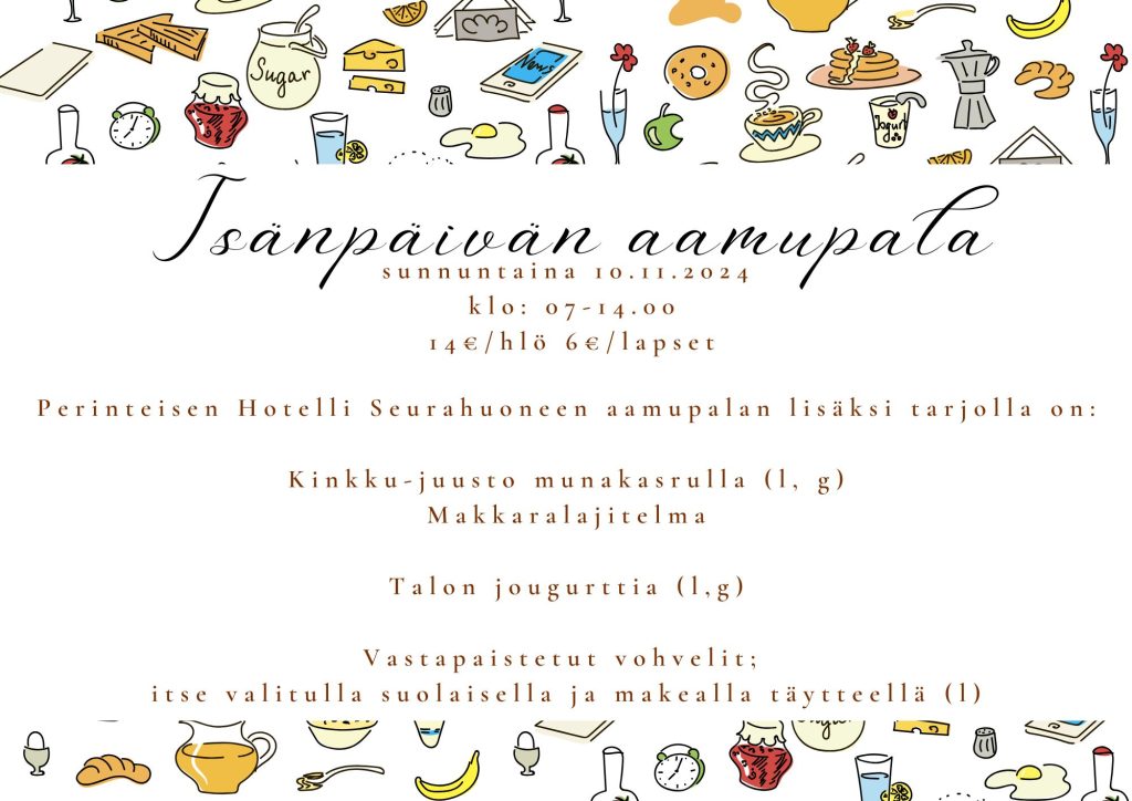 Tarjoamme perinteisen Hotelli Seurahuoneen aamupalan lisäksi Isänpäivän aamupalalla: