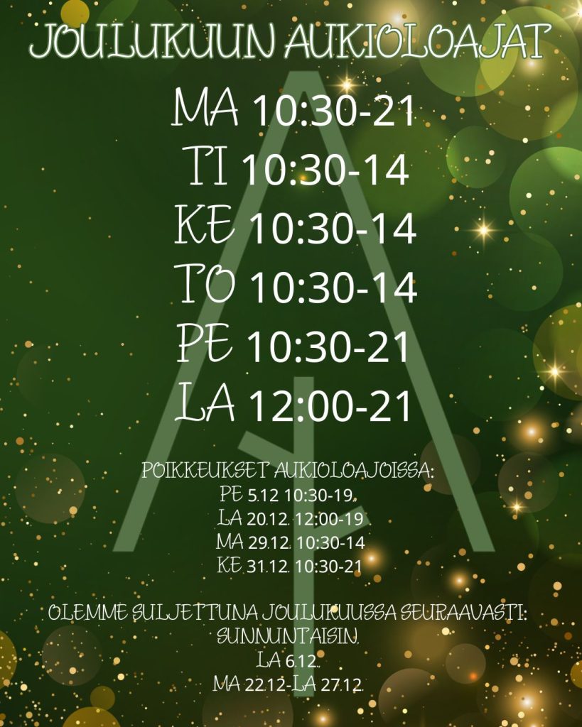 Olemme suljettuna joulukuussa SEURAAVASTI: