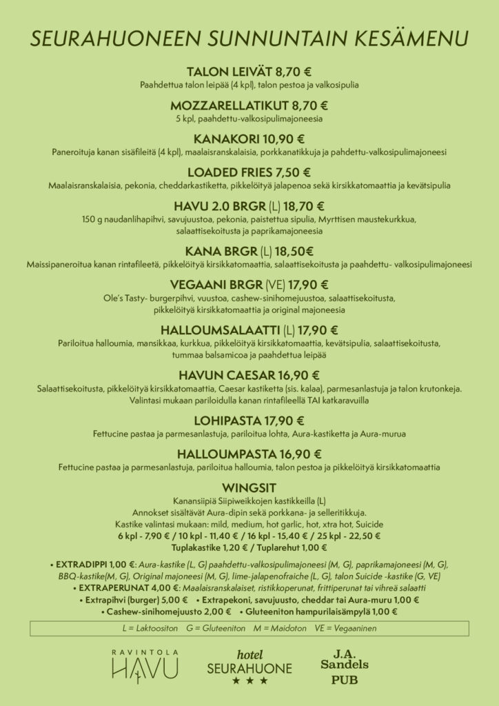 Ravintola HAVU on kesäsunnuntaisin avoinna 12-19
