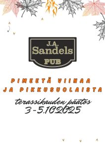 Santtu ja Sandels – lyömätön yhdistelmä! J.A. Sandels Pub toivottaa kaikki tervetulleiksi tunnelmallisiin tiloihimme viihtymään hyvässä seurassa ja nauttimaan edullisia juomia kampanjahinnoin!